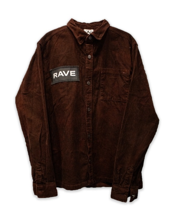 Ręcznie farbowana koszula upcyclingowa RAVE z naszywkami z panamy z własnym nadrukiem.